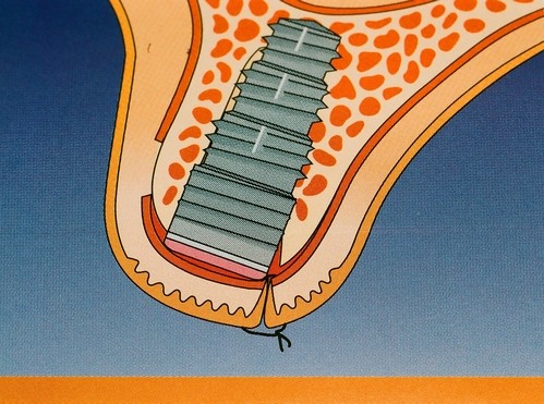 Titan verhält sich elektrochemisch neutral, so dass die Knochenzellen natürlich reagieren und sich dicht an die Implantatoberfläche anlagern. So entsteht der Eindruck, als wären diese in den Knochen eingewachsen.